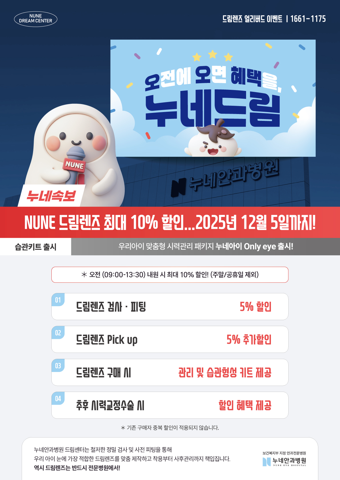 [드림렌즈 얼리버드 이벤트] 오전에 오면 혜택을. 누네드림!
