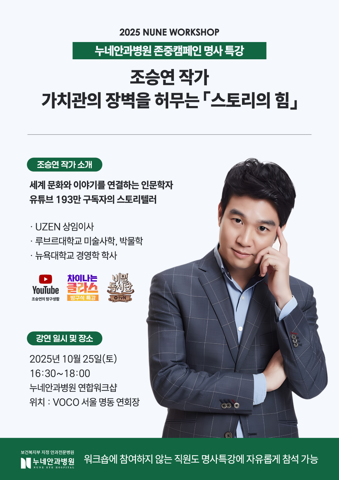 누네안과병원 직원 여러분을 위한 특별한 명사 특강이 찾아옵니다.