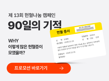 왜 이렇게 많은 헌혈증이 모였을까?그 답은 멀리 있지 않습니다.작은 빛이 모여 누군가의 내일을 밝혀주니까!매년 겨울철인 12월부터 이듬해 2월까지,약 90일 동안 진행되는 누네안과병원 대표 사회공헌 캠페인 [90일의 기적]한 사람의 헌혈증으로 시작된 나눔이또 다른 마음을 움직이고, 또 다른 생명을 이어줍니다.그렇게 90일 동안, 수많은 마음이 모여기적을 만들어 냅니다.우리가 함께할 때,그 기적은 현실이 됩니다.2025-2026년 헌혈자 대상 시력교정 혜택기간 : 2025년 12.01~2026. 02.28방법 : 내원 시 헌혈증 수납데스크에 제시